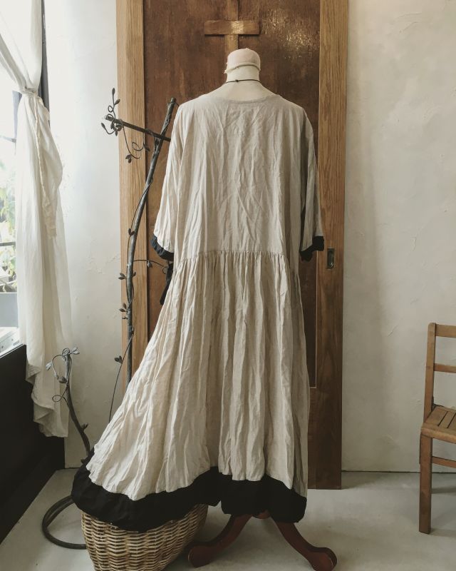 MARCHE' DE SOEUR/生成りベージュ×ブラックリネンワンピース